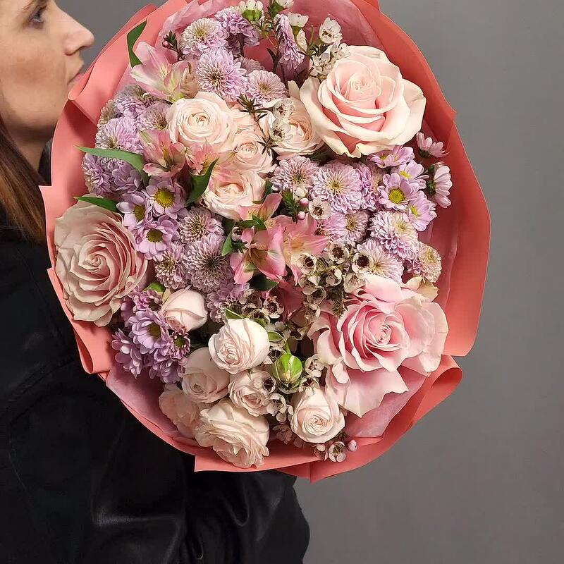 Гвоздики, Кустовые розы, Лизиантусы, Пионовидные розы, Розы