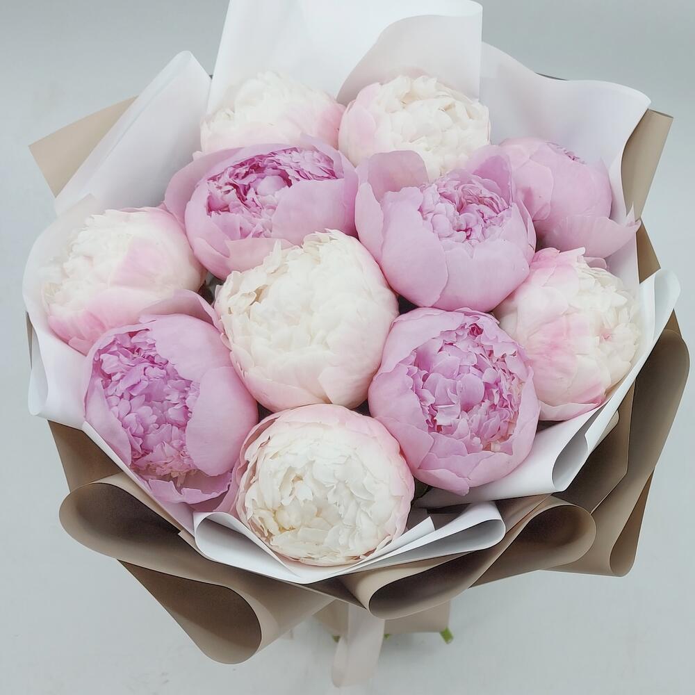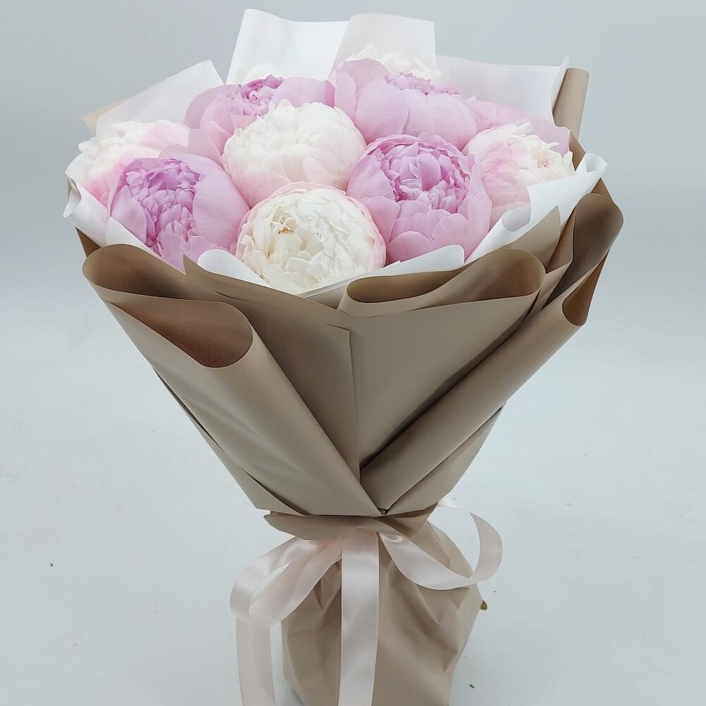 Упаковка дизайнерская – 1 шт.Пион премиум – 11 шт.Лента атласная – 1 шт.