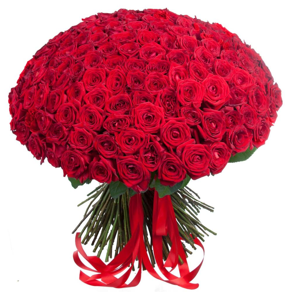 Лента атласная – 1 шт.Роза красная россия – 101 шт.