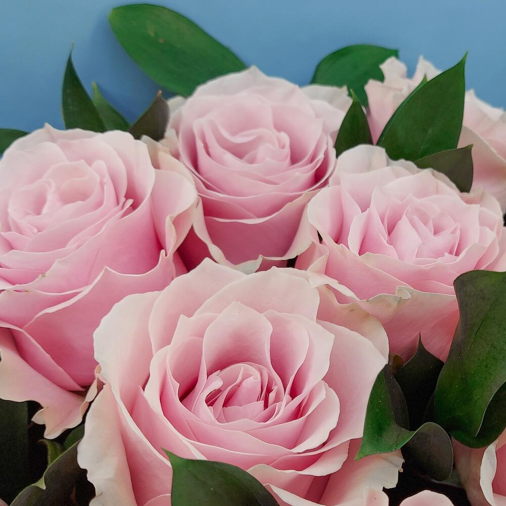11 нежно-розовых роз с зеленью
