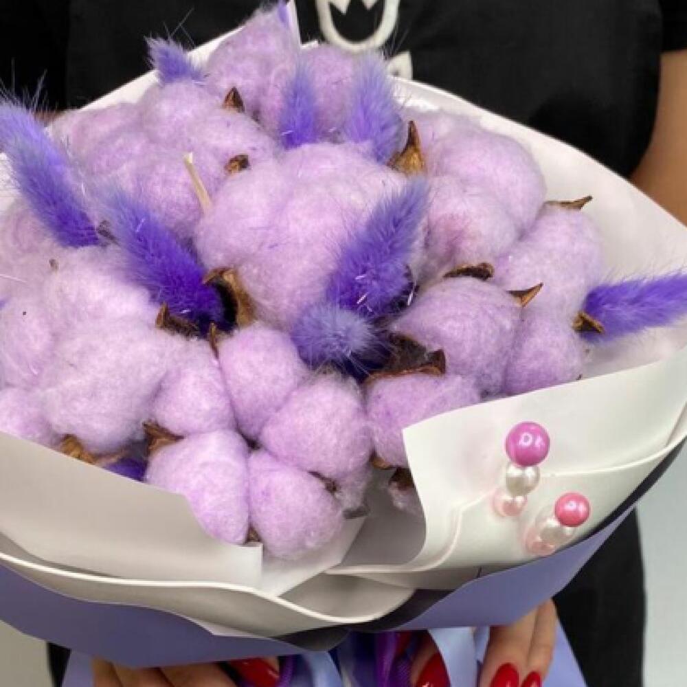 Легкий хлопок и лагурус отлично подходят для подарка любимым людям. Такой букет не завянет и будет долго радовать вас свей красотой.Уважаемые посетители! Пожалуйста обратите ваше внимание на размер букета при заказе! Он учитывается вместе с упаковкой